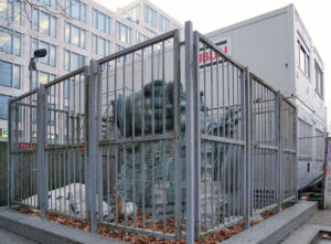 Eine Begehung habe im Dezember gezeigt, dass die Baufirma jetzt eine geringere Fläche als früher benötige und nutze, antwortete Ordnungsstadtrat Oliver Schruoffeneger (Grüne) in der BVV-Sitzung. Für die verbliebenen Container sei die Erlaubnis zum Jahreswechsel abgelaufen, bestätigte er. „Ein Verlängerungsantrag liegt bisher nicht vor.“ Damit handele es sich aktuell um eine „illegale Nutzung“ des öffentlichen Straßenlands. Bitte die Baufirma um eine neue Genehmigung, könne man diese jedoch nicht verweigern, fügte Schruoffeneger hinzu. Bei der Begehung habe das Bezirksamt erfahren, dass die Innenarbeiten bis zum 16. Juni dieses Jahres andauern sollen.