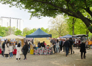 Ein geplanter Pavillon mit Geschirrspülplätzen werde voraussichtlich erst 2024 fertig, gibt Schruoffeneger zu. Der Bezirk verfüge aber über ein „eigenes Spülmobil, das an Veranstalter zum Selbstkostenpreis verliehen wird“. Das Ordnungsamt habe keine Räumung des gesamten Markts angedroht. Es entspreche „nicht unseren Feststellungen, dass sich kein Händler an die Auflagen hält“.