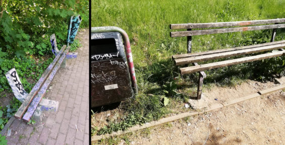 Wie löchrig darf eine Bank sein, um Bank zu sein? „Ich bin Busfahrer auf der Linie 395 und verbringe die Pause im ekligsten Park in ganz Marzahn-Hellersdorf“, schreibt unser Leser Dennis Gustke. Es handelt sich um die Grünanlage hinter der Straßenbahnwendeschleife Hellersdorf an der Riesaer Straße. Marode und fehlende Latten, beschmierte Mülleimer, rundherum Hundekotbeutel und Zigarettenkippen. Schon mehrfach hat Gustke über die Ordnungsamts-App den schlechten Zustand gemeldet, erzählt er, im vergangenen Jahr bereits und zuletzt im April. Geändert hat sich seitdem: nichts. Am 16. Mai bekam er jedoch Post. Das Straßen- und Grünflächenamt urteilte: „Der Papierkorb ist trotz Farbe benutzbar und die Bänke sind auch nutzbar.“