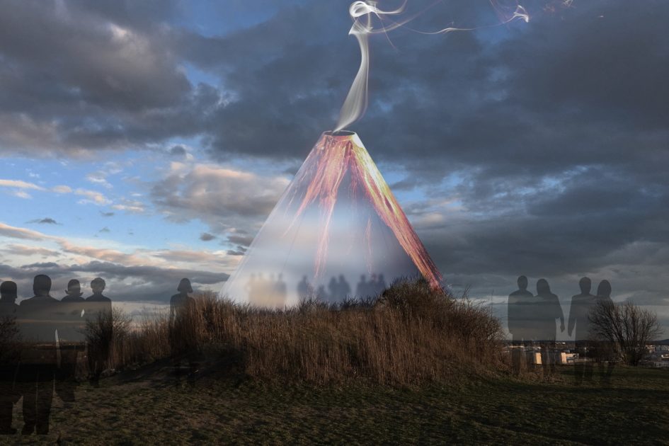 Wie sieht der Vulkan aus? Der Vulkan wird aus einem dünnen, durchscheinenden Material sein und nur durch Luft getragen. Im Inneren werden die KünstlerInnen eine Sandschicht auftragen, dort können sich die Besucher aufhalten und das Gefühl erleben, zu Lava zu werden. Nachts fängt der Vulkan dann an zu leuchten.