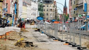 In der Karl-Marx-Straße wird seit 2010 in mehreren Etappen gebaut. Der aktuelle, letzte Bauabschnitt zwischen Erk- und Weichselstraße soll bis 2024 fertig werden. – Text: Madlen Haarbach