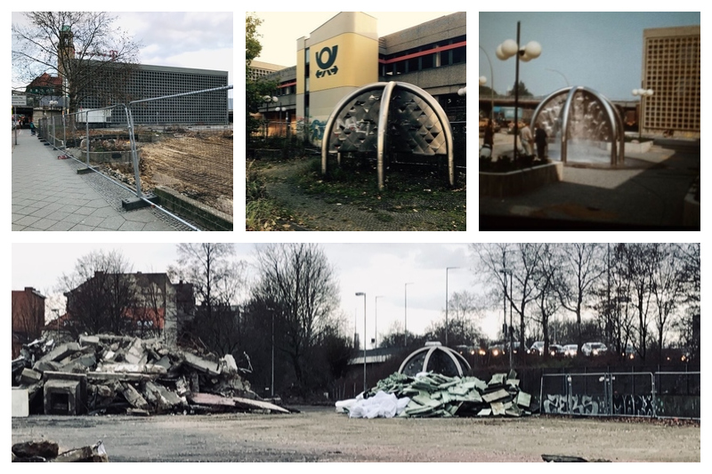 Nach 40 Jahren ist der Postbrunnen verschwunden. Er war ein Wahrzeichen im Zentrum von Berlin-Spandau, entworfen von Künstlerin Ursula Sax, 83. Der markante Postbrunnen stand seit 1980 (Foto) vor der Post-Zentrale an der Klosterstraße, gleich am ICE-Bahnhof. „Der Brunnen funktioniert, er war teuer, er braucht einen würdigen Platz in Spandau“, hatte die Künstlerin dem Spandau-Newsletter erzählt. Ihr Auftraggeber war 1980 übrigens die Post selbst. Und Kulturstadtrat Gerhard Hanke, CDU, hatte hier im Newsletter einst energisch gesagt: „Der Postbrunnen ist Stadtgeschichte, seit 40 Jahren steht der dort. Das Kunstwerk muss der Altstadt erhalten bleiben.“ Nur wo? An der neuen Flussmündung Spree Ecke Havel? Vor dem Spandau-Museum an der Zitadelle?