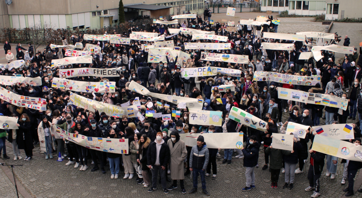 • Spandaus größte Schule demonstriert für den Frieden: Schulleiter der Bertolt-Brecht-Schule berichtet im Newsletter
