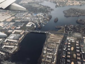 Hier ein Foto aus der TXL-Schneise. Links am Ufer die alte Wasserstadt Spandau, dazwischen die Wasserstadtbrücke, rechts entsteht die neue Wasserstadt. An der Brücke links ist das Hochhaus „Deck one“ geplant. Am rechten Ufer soll auch ein Hochhaus mit 17 Stockwerken entstehen. Die große Straße soll später einmal nach Osten geführt werden, wenn auch dort Wohnungen für 10.000 Leute entstehen. – Text: André Görke
