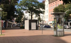 Das Klo vom Metzer Platz. Dort befindet sich ein Klo, das zwar schön modern ist, aber dummerweise mitten auf dem Platz steht – und wenn die Leute dort pinkeln, kann man ein bisschen zu viel sehen. Am Wochenende war ich eine Grillplatte beim Kroaten nebenan futtern und bestätige: Stimmt, Mahlzeit. Geht das besser? Wollte die SPD um Fraktionschef Christian Haß wissen – hier ein Foto. Denn: „Die neue Toilette am Metzer Platz ist derzeit so ausgerichtet, dass die Besucherinnen und Besucher der umliegenden Gastronomiebetriebe wie auch die spielenden Kleinkinder auf der Spielfläche ungehinderte Sicht in den Pissoirbereich haben.“ Vorschlag: „Dies sollte aus ästhetischen Gründen möglichst umgehend, z. B. durch Installation einer Sichtblende geändert werden.“