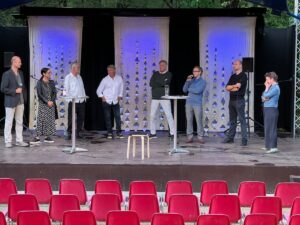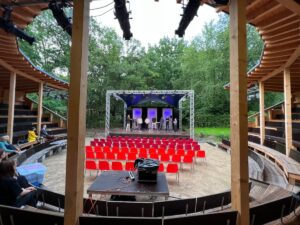 Frank Schaal, er organisiert mit dem Regionalinkubator Berlin Südwest Netzwerke und Veranstaltungen, hatte am vergangenen Montagabend in das Open-Air-Theater der Shakespeare Company Berlin am Insulaner geladen. Das Thema der Veranstaltung: „Kultur als Wirtschaftsfaktor – Chancen und Herausforderungen für die Kulturbetriebe der Berliner Außenbezirke“. Es hatte kurz zuvor gewittert und gestürmt, etwa 30 Zuhörerinnen und Zuhörer hatten trotzdem den Weg ins Theater gefunden. „Wir haben eine rege Kulturszene außerhalb des S-Bahnrings“, sagt Frank Schaal. In den Rängen wird genickt, auf der Bühne auch. Doch dass es diese Szene gibt, die weitgehend ohne staatliche Mittel auskommen muss, scheint echte Magie zu sein.