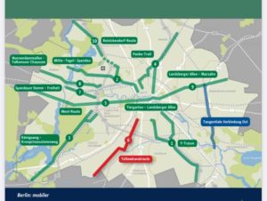 Dagegen wehren sich die fünf Verbände. Der Fußgängerverein FUSS, der Naturschutzbund, die Naturfreunde und die Initiativen Grünzüge für Berlin sowie Natur statt Asphalt mahnen den Senat, diese Planungen zu überdenken. Nicht nur würde ein 7,5 Meter breiter, teilweise versiegelter Weg viel Natur zerstören. Auch sei der Sicherheitsstreifen von 30 Zentimetern zu gering, wenn Fahrer von Rennrädern und Pedelecs durch den ausgewiesenen Schnellweg zu Geschwindigkeiten „bis etwa 40 Stundenkilometern animiert“ würden. „Eine derartige Wegeanlage widerspräche dem Mobilitätsgesetz Berlin“, schreiben die fünf Initiativen in ihrem Brief an die Verkehrssenatorin.