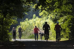 - Fußgänger spazieren in zweiter Reihe. Wasser – Böschung – Radweg – Fußweg: Entlang des gesamten Kanals fahren die Radler direkt am Wasser. Die Fußgänger flanieren auf ihrem Zwei-Meter-plus-Weg dahinter.