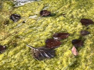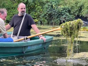 Eine Kahnfahrt, die ist lustig – wenn man nicht das Ruderblatt zu tief eintaucht. Im südlichen Teil des Zehlendorfer Waldsees fließt das Regenwasser aus der Argentinischen und Lindenthaler Allee und vom Mexikoplatz ungefiltert in den See. Abrieb der Autoreifen, Plastik, Blätter, Zigarettenkippen, tote Ratten, Blütenpollen, Schwermetalle – alles kommt mit dem Wasser mit. Im See sammelt sich der Regenwasser-Cocktail, sinkt zu Boden, wird zu Schlamm. Die Südhälfte des Gewässers ist im Schnitt 2,5 Meter tief. Die Anwohnerinnen und Anwohner haben nachgemessen: Oben auf dem See schwimmt zur Zeit eine hellgrüne Schicht Algen, darunter befinden sich etwa 50 Zentimeter klares Wasser, dann kommen zwei Meter faulender Schlamm. Wenn das Ruder die Schlammschicht durcheinander wirbelt, entfaltet der Waldsee seinen besonderen Duft – es stinkt erbärmlich.