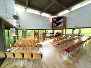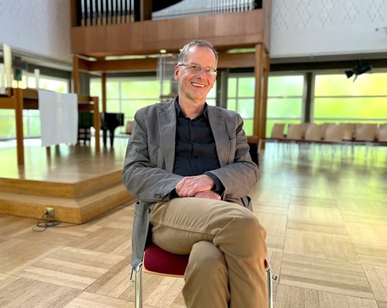 Dieses Haus strahlt Klarheit aus. Sie kommen durch einen langen Gang in die Kirche, rechts die Gemeinderäume, links der Kirchsaal. Es ist alles klar. Es ist ein Spiegel, wie ich selber auch gerne sein möchte, ich möchte klar sein und auch für Klarheit sorgen. Berechenbarkeit, Durchsichtigkeit, Licht, Freundlichkeit und Helligkeit, das ist mir wichtig. Der Architekt Peter Lehrecke hat das Haus 1963 errichtet, er hat Theologie gebaut.
