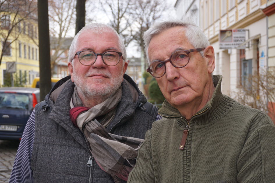 Harry Mehner (l.) und Wolfgang May, ehemalige Mitarbeiter des DDR-Fernsehens und Experten für Johannisthaler Filmgeschichte